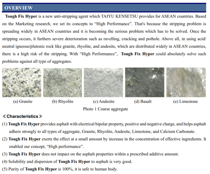 *) Tough Fix Hyper là loại phụ gia tăng dính bám đá nhựa, hạn chế sự bong bật của bê tông nhựa, kéo dài tuổi thọ mặt đường.