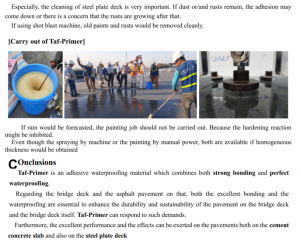 TAF-PRIMER is used for waterproofing and creating a strong bond between steel bridge decks or concrete decks and the asphalt concrete layer.