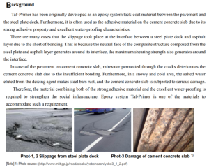 TAF-PRIMER is used for waterproofing and creating a strong bond between steel bridge decks or concrete decks and the asphalt concrete layer.