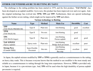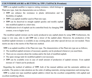 *) TAFPACK- Premium (TPP®) is an asphalt modifier to improve the rutting resistance.