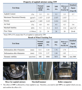 | Application | TPP additive is the plant mix type according to the specified dosage. |