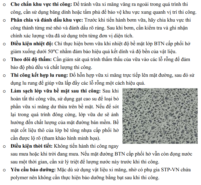 *)STP-VN là loại phụ gia cải thiện xi măng được sử dụng trong hỗn hợp vữa xi măng cho Mặt đường bán mềm.
