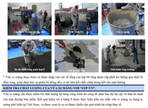 *)STP-VN là loại phụ gia cải thiện xi măng được sử dụng trong hỗn hợp vữa xi măng cho Mặt đường bán mềm.