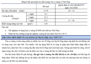 | Cách dùng | Trộn xi măng PCB40 + Nước sạch + STP-VN tại hiện trường theo tỷ lệ qui định. |
