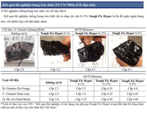 *) Tough Fix Hyper là loại phụ gia tăng dính bám đá nhựa, hạn chế sự bong bật của bê tông nhựa, kéo dài tuổi thọ mặt đường.